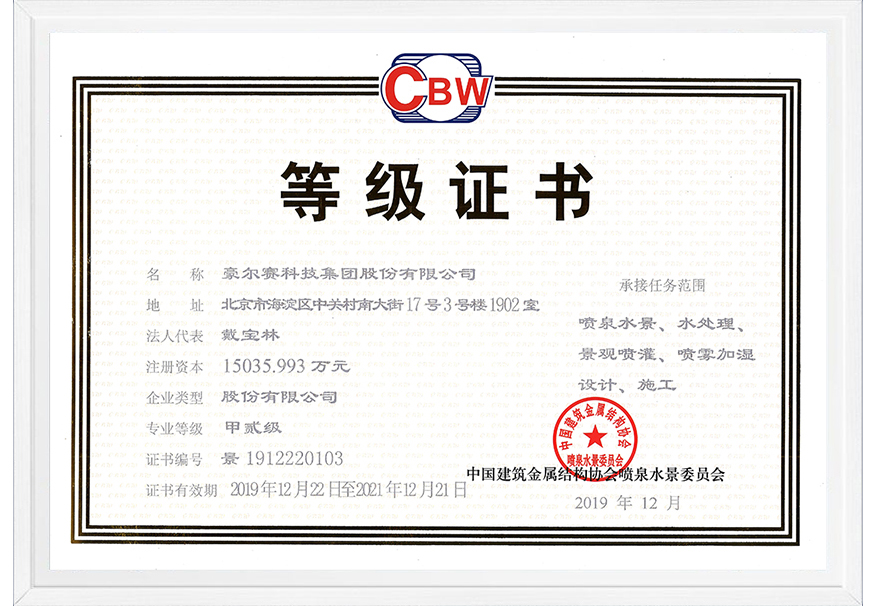 GOWIN集團是國內首批擁有住房和城鄉建設部頒發的"照明工程設計專項甲級資質"和"城市及道路照明工程專業承包壹級資質"的公司,并具備“噴泉水景、水處理、景觀噴灌、噴霧加濕設計、施工甲級”資質證書。公司通過了 GB/T19001-2016 idt ISO9001:2015 & GB/T50430-2017質量管理、 GB/T 2401-2016 idt ISO14001:2015 環境管理、 GB/T 45001-2020 idt ISO45001:2018 職業健康安全管理等體系認證、且獲得國家權威資信評估機構的AAA資信等級認證。